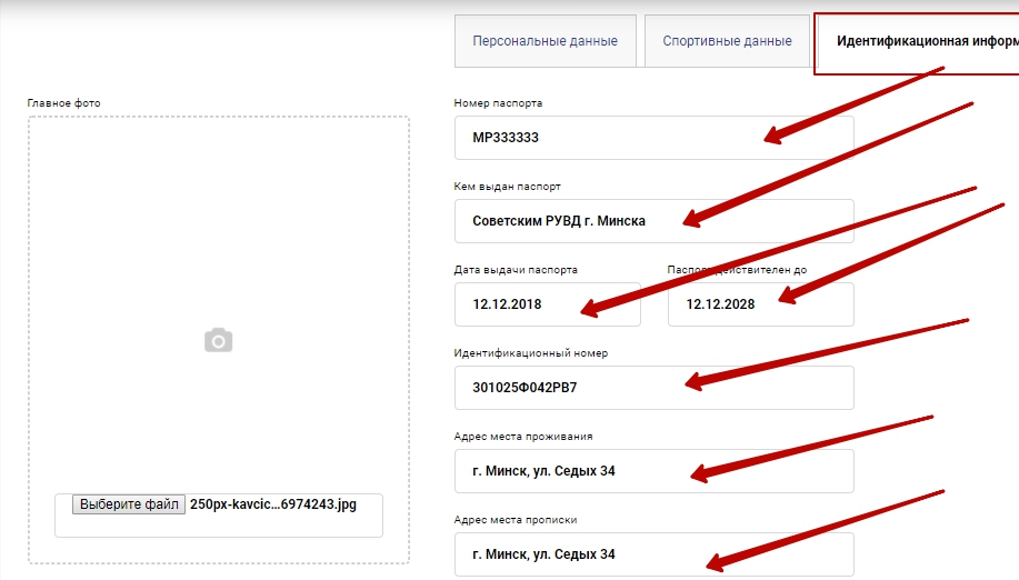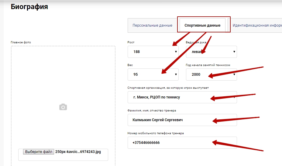 Шаг 5. Заполнение "Спортивных данных"