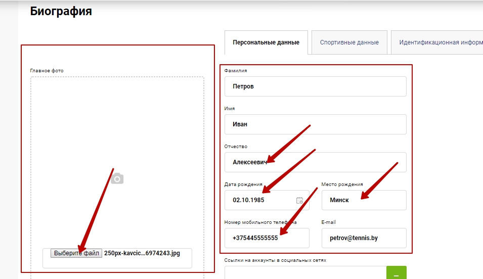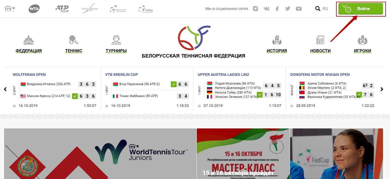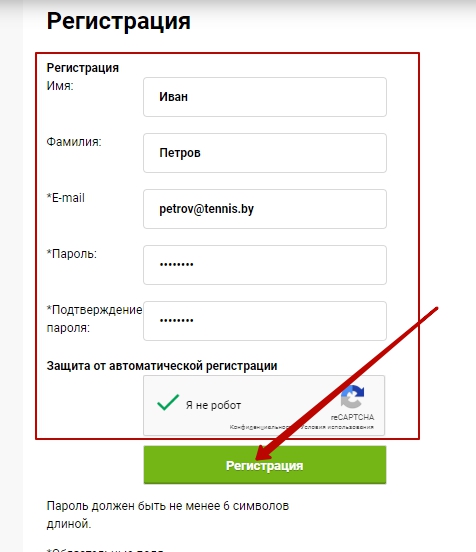 Инструкция по регистрации на портале tennis.by